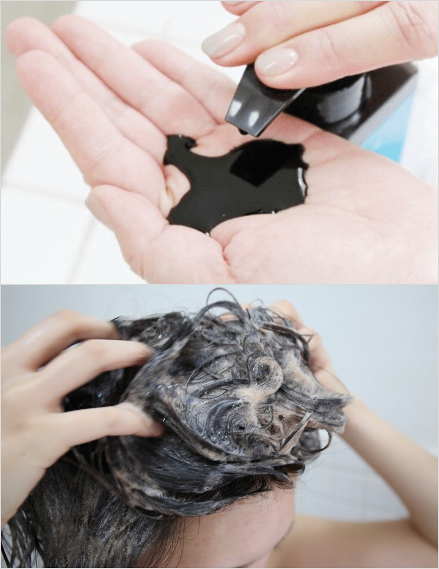 ショート~ボブの方で2~3プッシュ。ロングの方は泡立ちの様子を見ながら3~5プッシュ程度を手に取り、直接髪につけて泡立てます。モコモコ茶色の泡を全体に広げます。 -