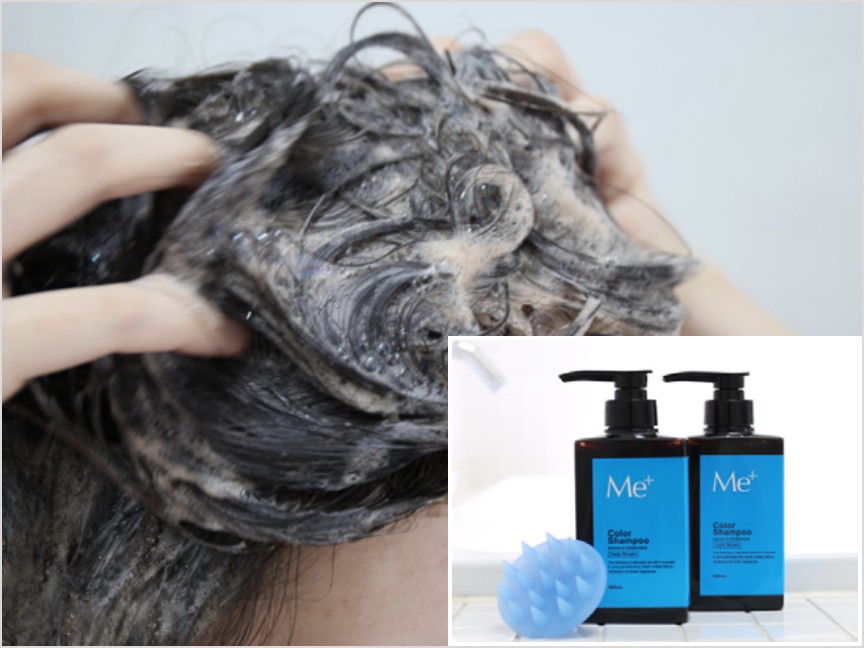 たっぷりの時間で浸透させたら色水がでなくなるまで、しっかり洗い流しましょう。頭皮のキメに入り込んでいる場合もあるのでスカルプブラシを使用したり、ミープラス カラーシャンプーを使うとさらに褪色予防効果がUPします。 -