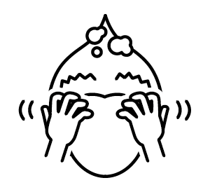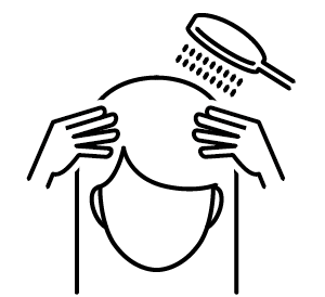 30~60秒くらいかけてお湯でしっかり洗います。予洗いすることで大まかな汚れは落ち、この後のシャンプーの泡立ちも見違えます。