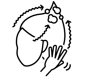 ショート~ボブの方で2~3プッシュ。ロングの方は泡立ちの様子を見ながら3~5プッシュ程度を手に取り、直接髪につけて泡立てます。モコモコ茶色の泡を全体に広げます。